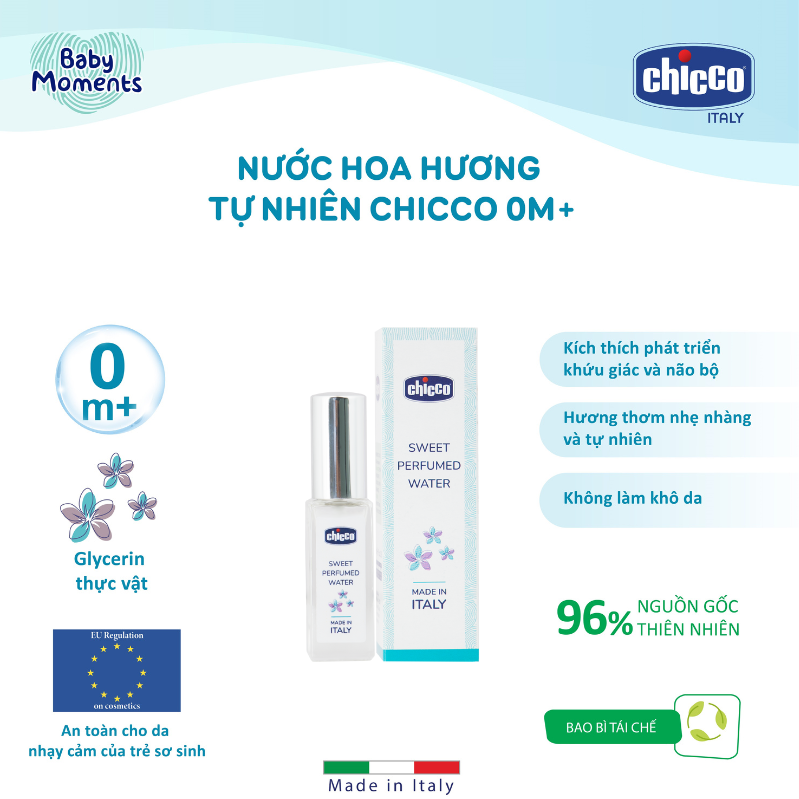 a. Nước hoa hương tự nhiên Chicco với 96% thành phần có nguồn gốc tự nhiên giúp: