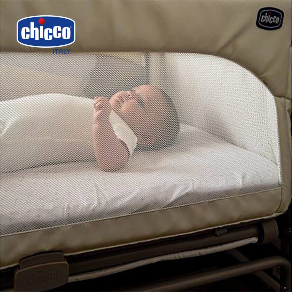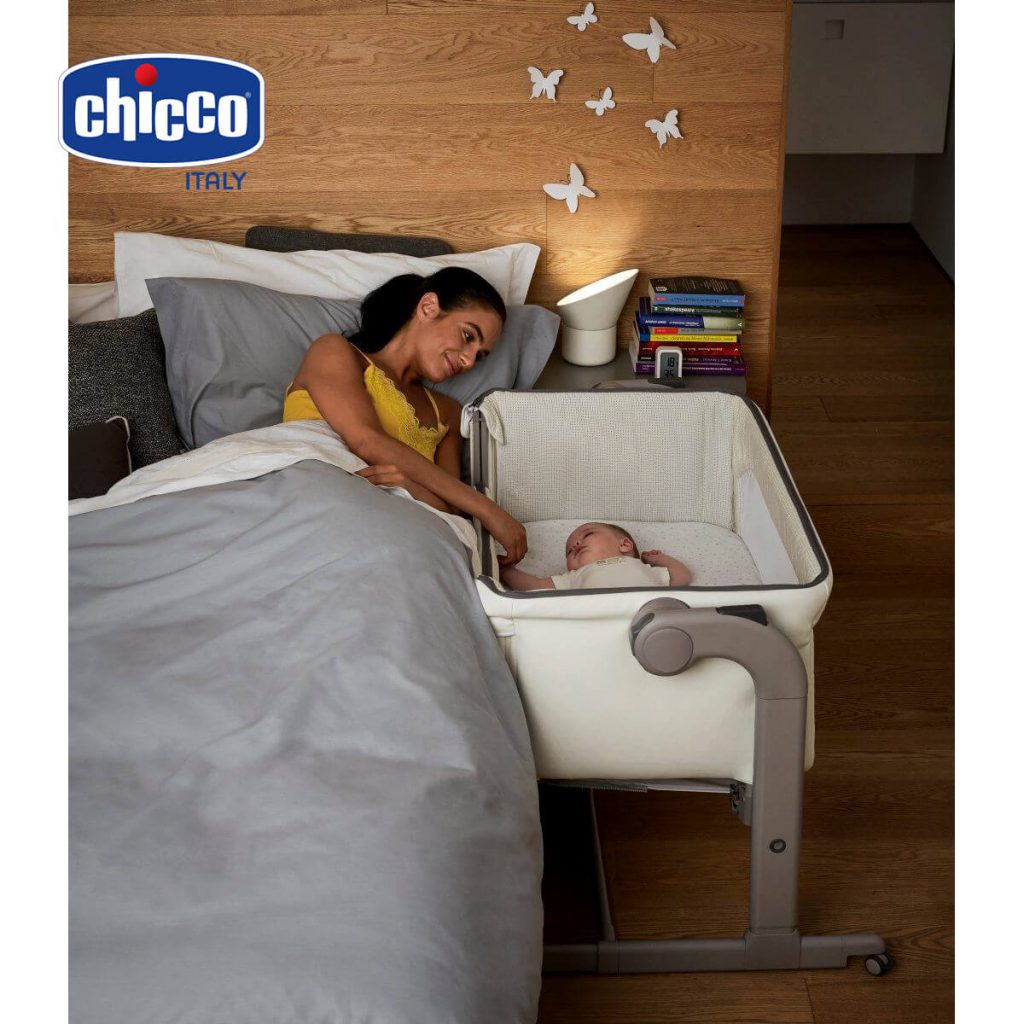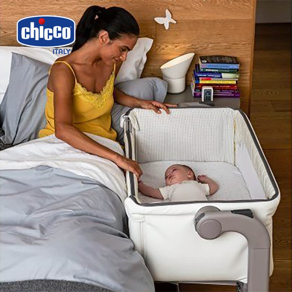 2. Cũi kề giường Chicco Next2me – cho ba mẹ giấc ngủ ngon và vẫn có thể “trông nom” bé bất cứ lúc nào.