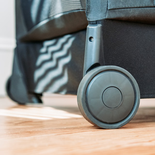 6. Cũi có 4 bánh xe xoay 360 trơn tru, bo tròn góc cạnh, không lo hỏng sàn, tiện lợi cho mẹ di chuyển cũi trong phòng