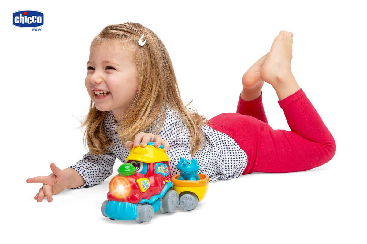 - Khi đoàn tàu dừng lại, nhấn nút 123 hoặc ABC phía bên hông Đầu tàu để lắng nghe những bài hát về học số đếm và bảng chữ cái. Ba mẹ hãy khuyến khích bé hát theo để kích thích khả năng ngôn ngữ của bé, và tham gia cùng bé để mỗi giờ nhập vai của con thêm hào hứng hơn.