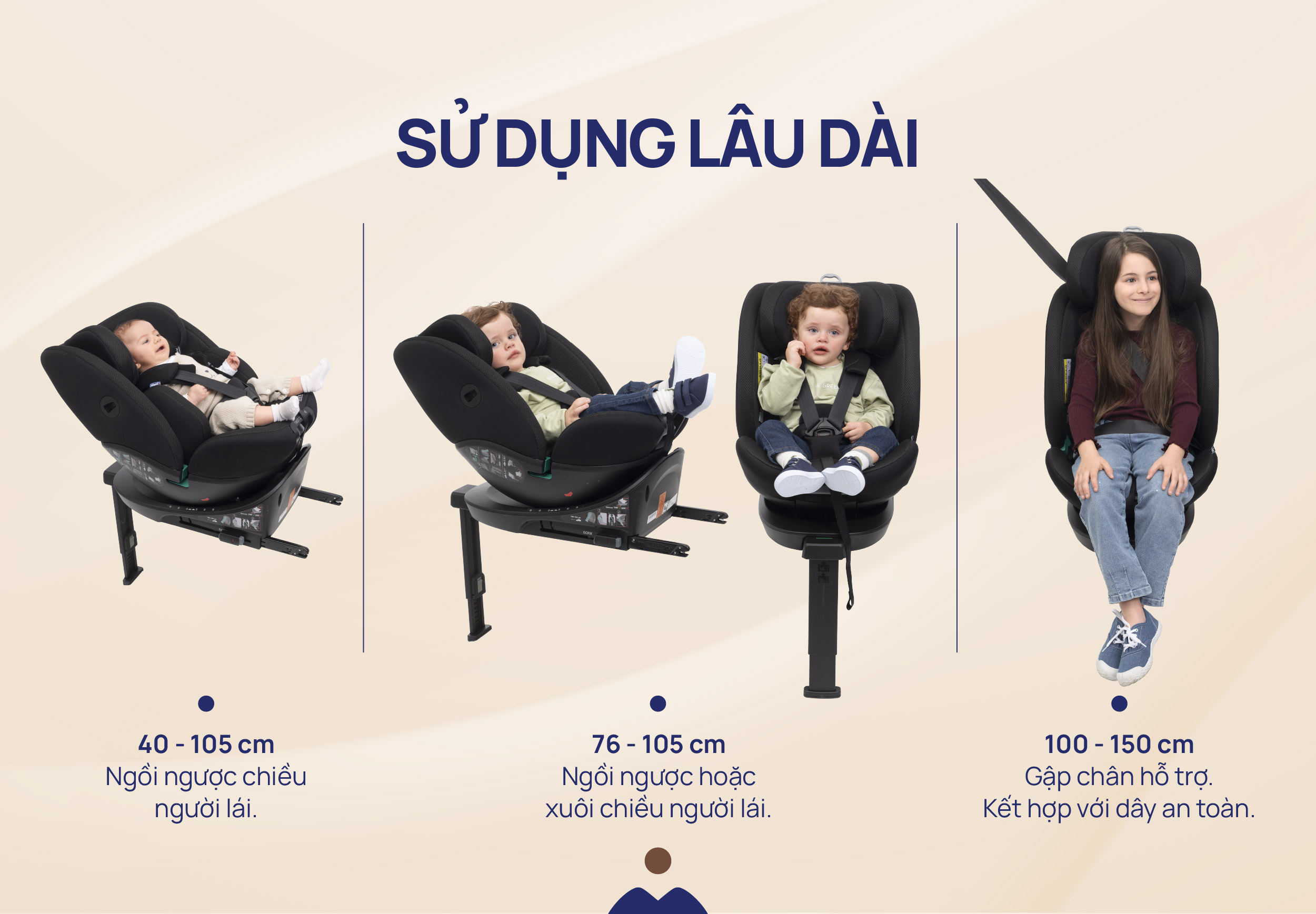 Tuổi sử dụng: Dùng cho trẻ từ sơ sinh đến khoảng 12 tuổi (Chiều cao từ 40cm đến 150 cm)