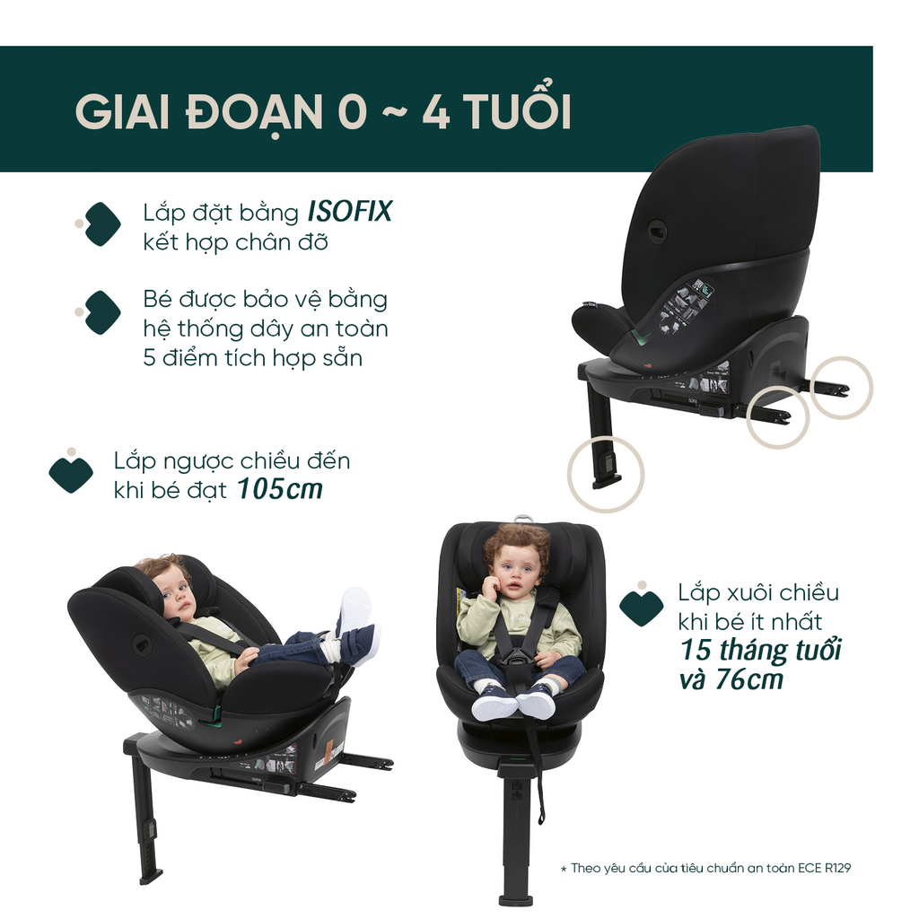 Chứng nhận tiêu chuẩn: ECE R129/03 và I-Size