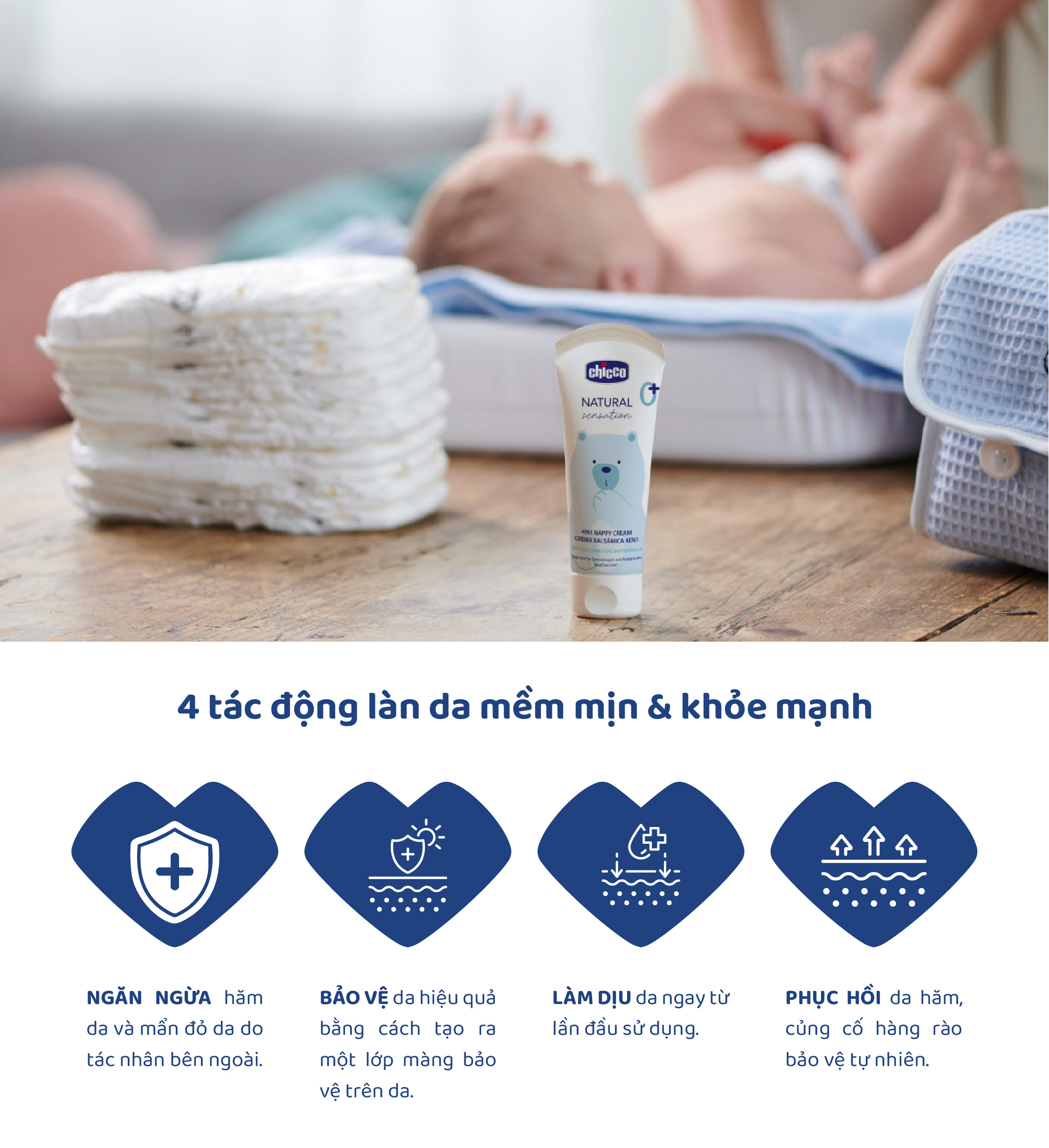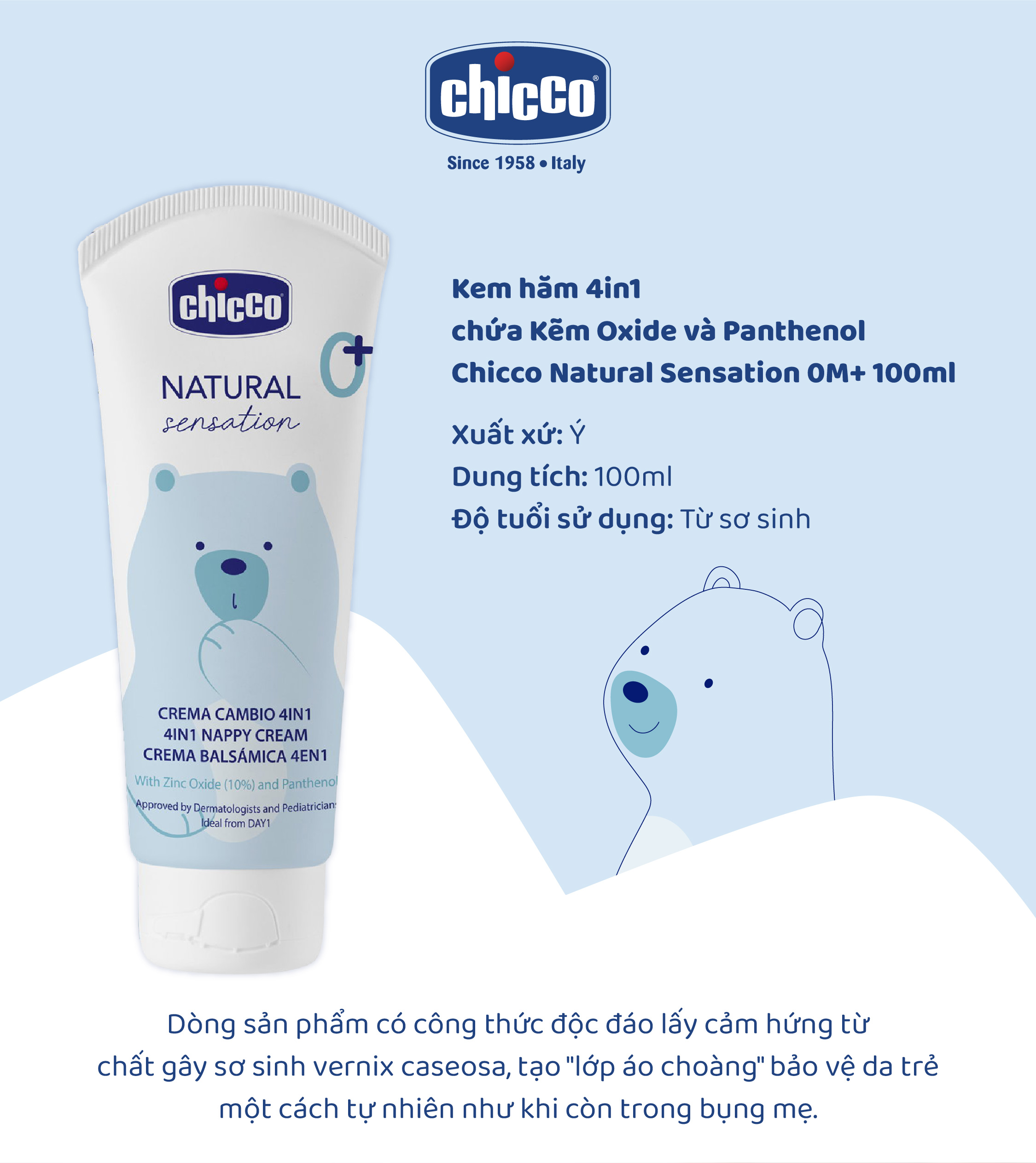 Kem hăm 4in1 chứa Kẽm oxide và Panthenol Chicco Natural Sensation 0M+ 100ml