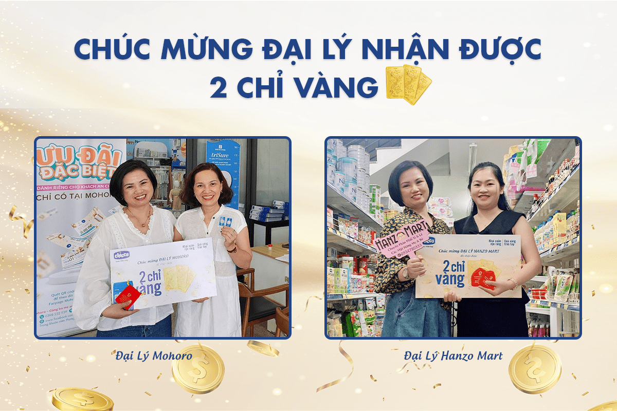 Đối với khu vực miền Nam, Đại lý Nhà của Gạo, Shop Bé Cưng nhận được 2 chỉ vàng, Đại lý Ben & Bắp, Đại lý Nana Mom, Đại lý Nous Baby, Đại lý Thế giới sơ sinh, Đại lý Hằng Japan, Đại lý Baby Town cùng nhận được 1 chỉ vàng.