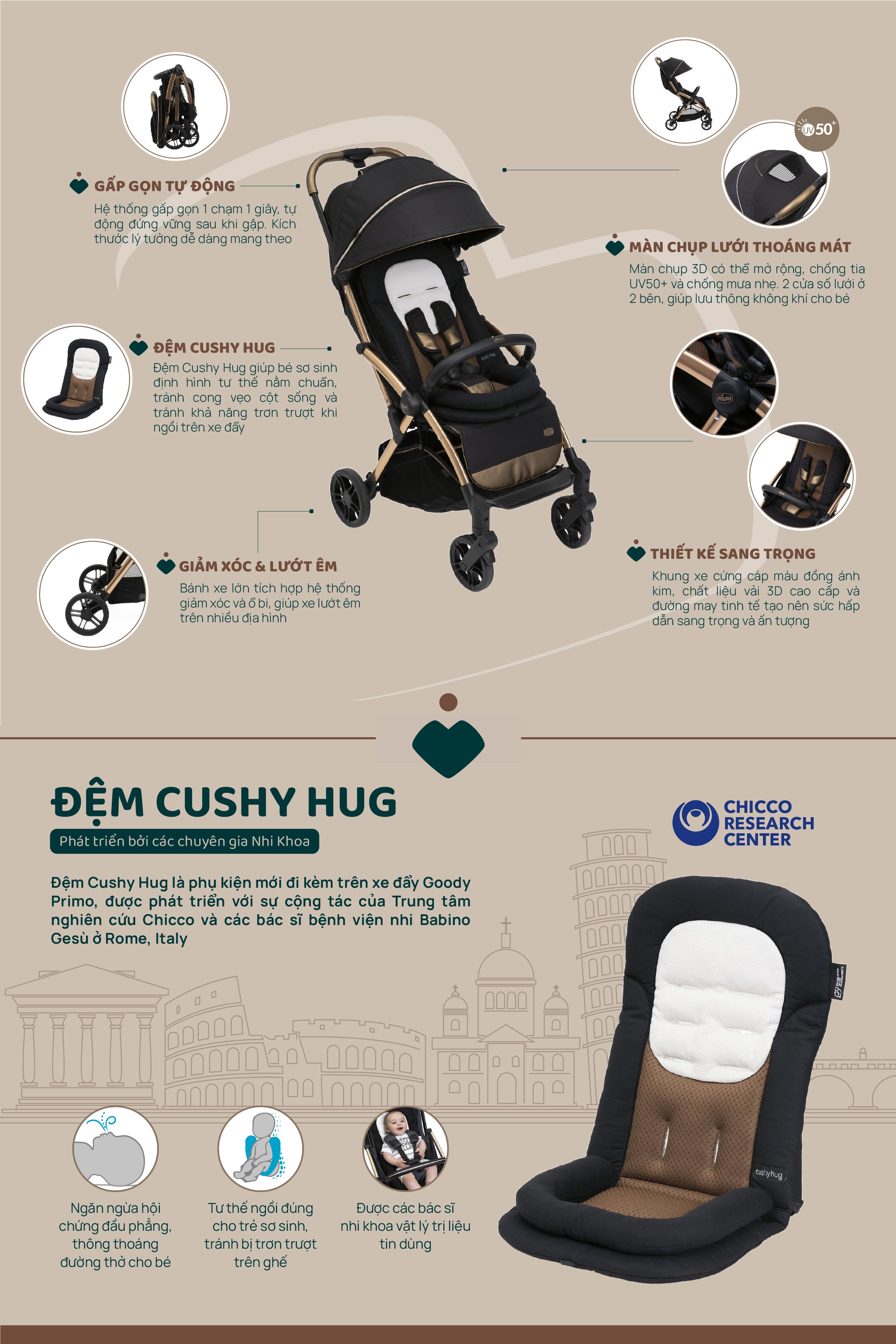 01 Khung xe đẩy đã được lắp sẵn: Màn chụp, Đệm Cushy Hug, Giỏ đựng đồ